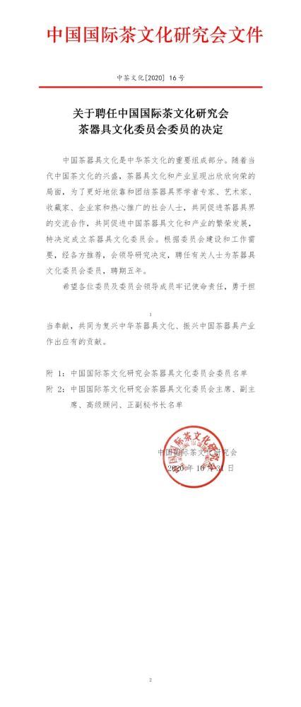 成立大会上,公布了委员会组成名单,“中国国际茶文化研究会茶器具文化委员会的一大特色之一就是委员组成,包括知名学者专家、艺术家、收藏家、企业家和热心推广的社会人士,集成优势,共同促进中国和世界茶器具界的交流与合作,共同推动茶器具文化和产业的繁荣发展。” 中国国际茶文化研究会茶器具文化委员会副主席(执行)陈永昊告诉记者。