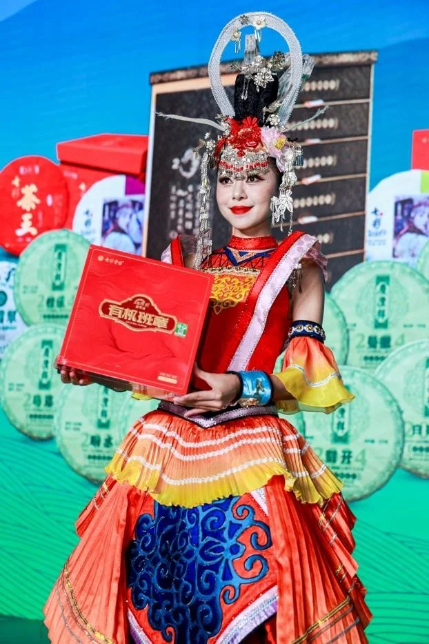 下午场会议中,在极具云南特色的服装走秀中拉开帷幕,七彩云南茶带来了正山春古、古六大正山古树典藏、七彩茶王、有机班章生熟、七彩1889、年份茶开仓等多款春季新品。