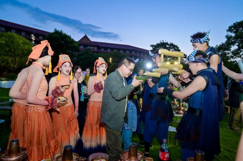 在春城的落日余晖下,七彩茶人们相聚七彩家宴,品味地道云南特色牛汤铜锅美食,在欢歌热舞中,领略到了云南少数民族的热情,在熊熊燃烧的篝火旁围跳欢笑,在一声声为七彩云南好茶而举杯的欢呼中,伴随着七彩家宴,本次大会圆满落幕。